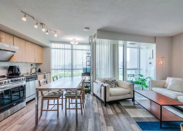 Gelegen im Viertel Toronto Stadtzentrum von Toronto, ist das 65 m² große Chic 1Br Plus Den Condo With Fast Wifi And Free Parking Toronto in rund 5 Gehminuten Entfernung vom Fort York und in einer 1 km Entfernung von der Scotiabank Arena, was für Sportfans ein großer Vorteil wird.